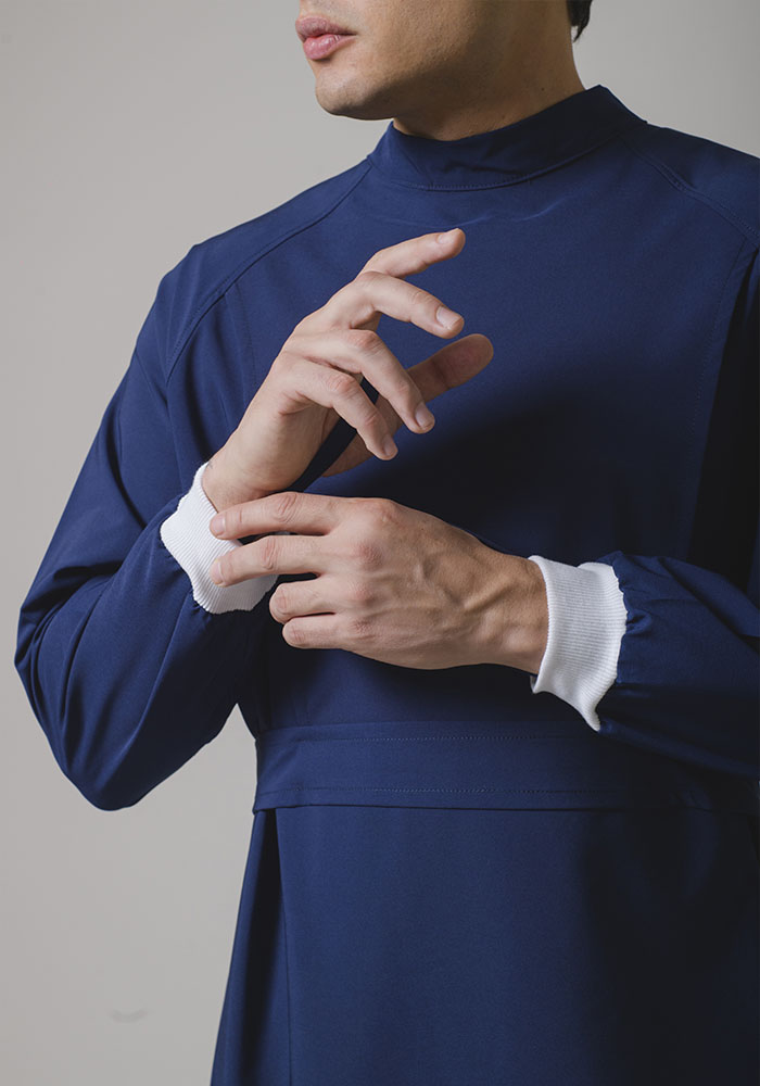 Bata unisex, tela repelente spandex, comoda, cuello ajastable y manga larga con puño.