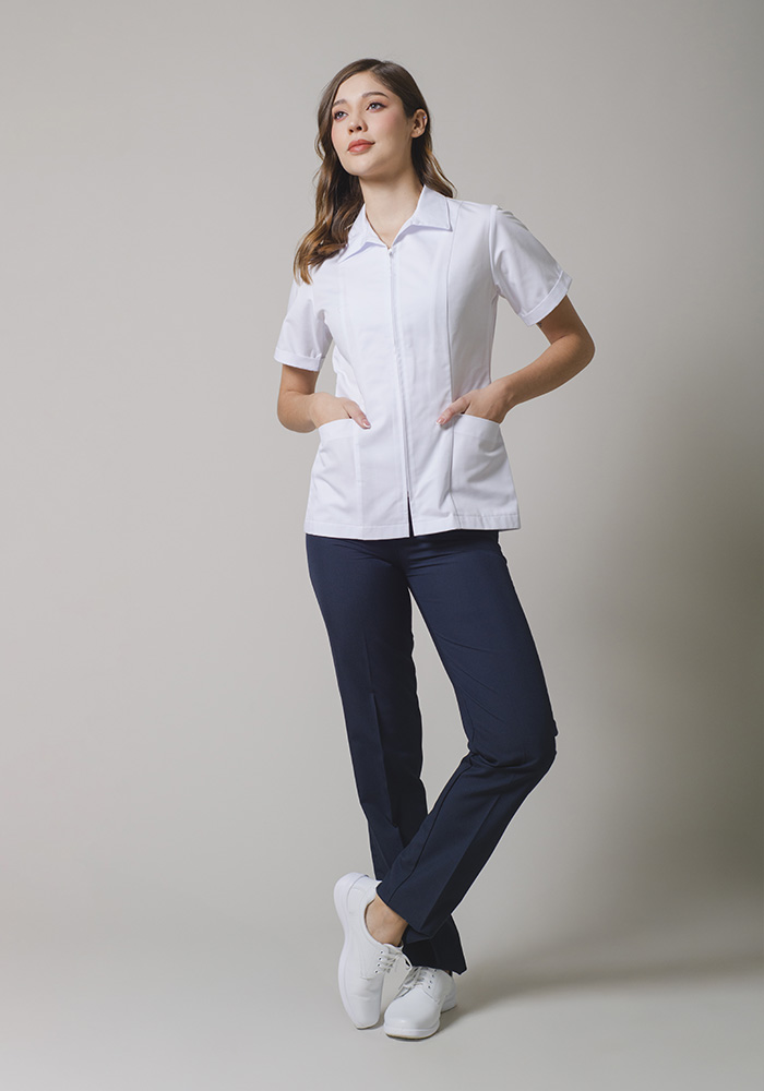 Pantalón corte recto, botón y cierre con pretina, resorte en cintura.