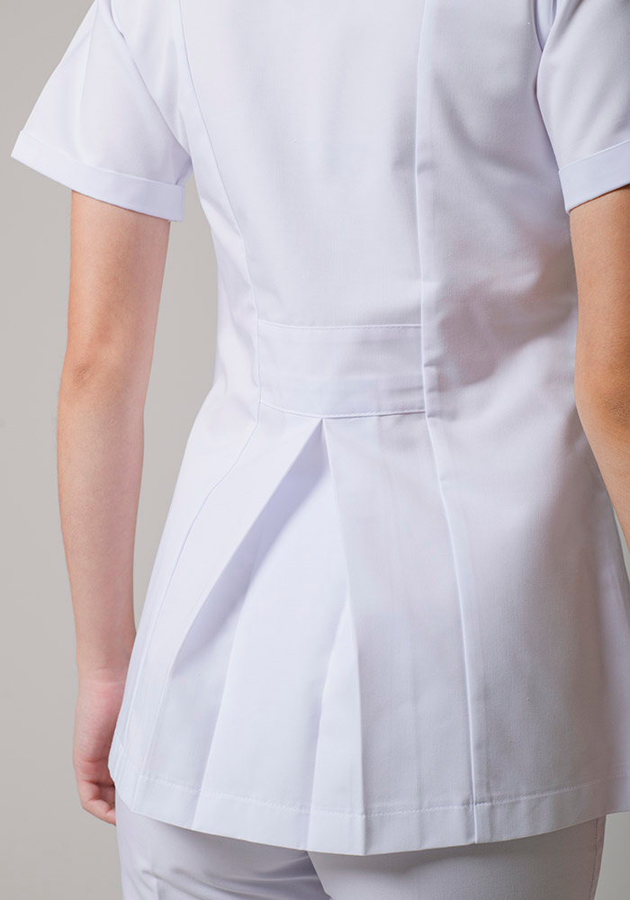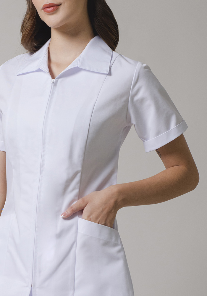Filipina manga corta con cierre en el frente, dos bolsas ocultas, espalda con patol.